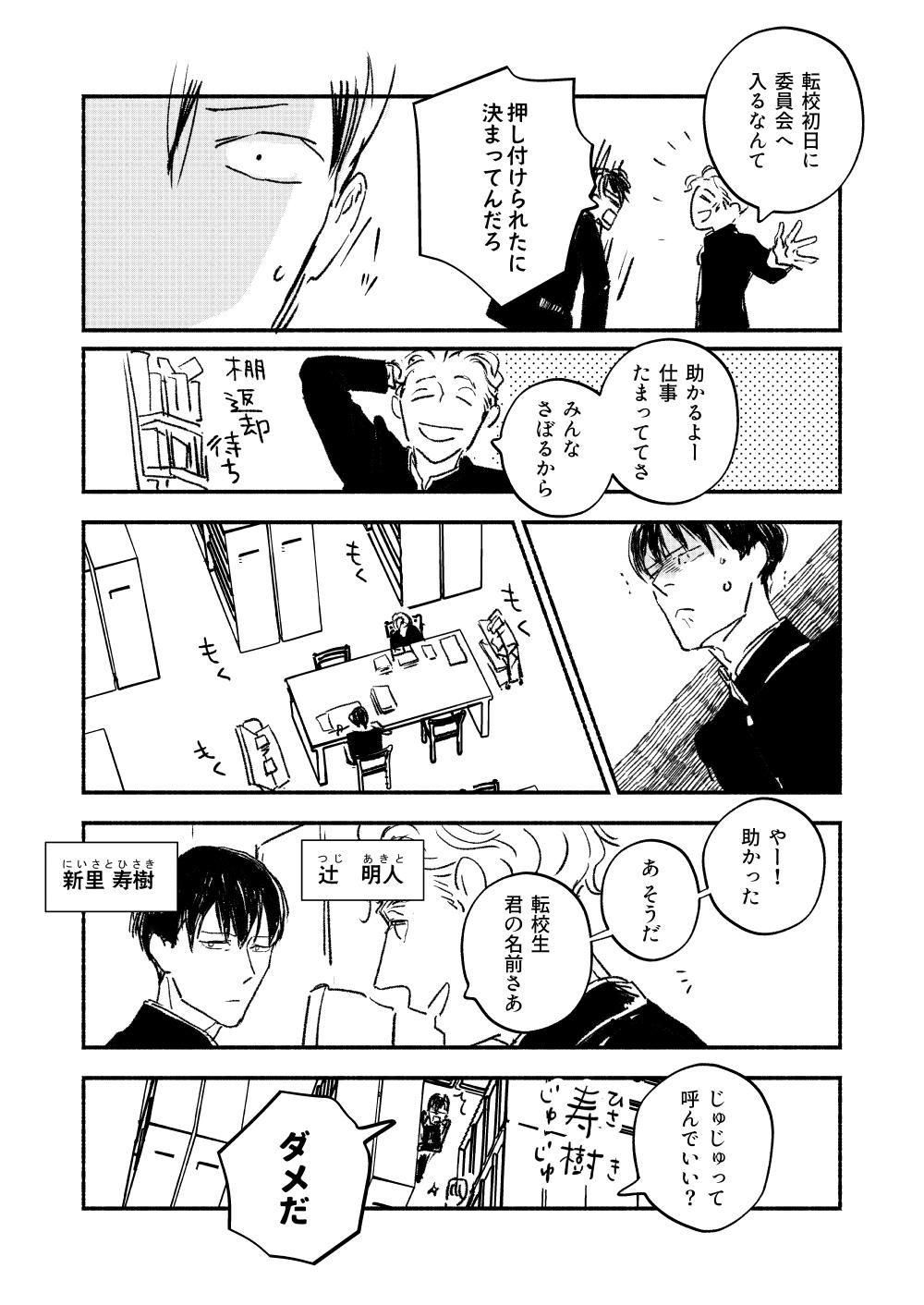 辻明人(つじ・あきと)と新里樹寿(にいさと・ひさき)は高校の同級生。
