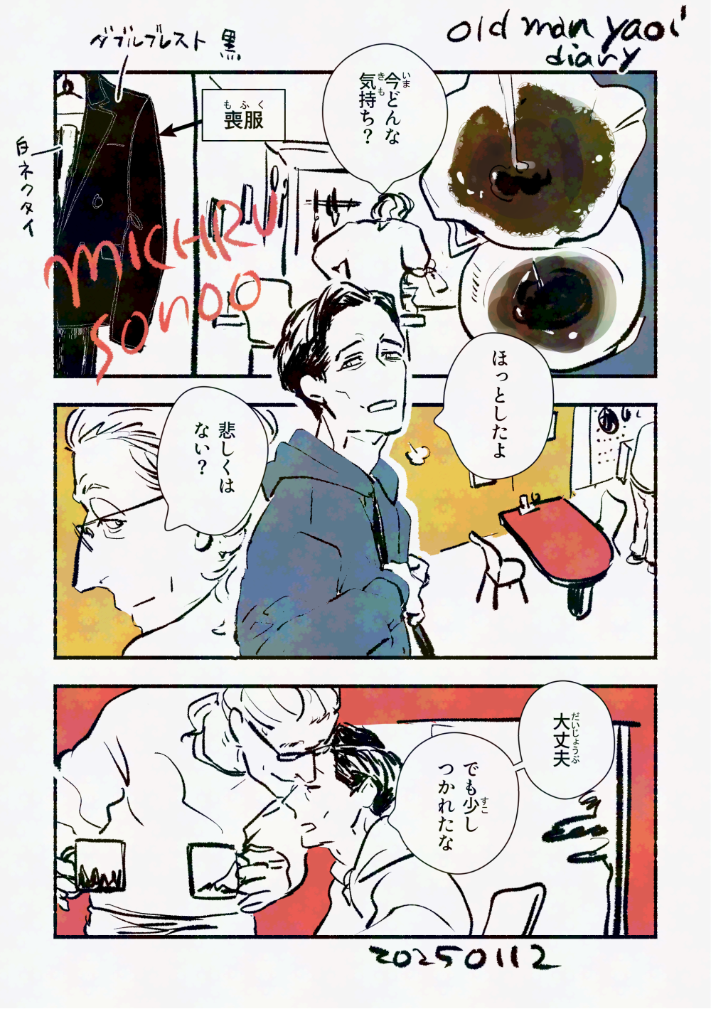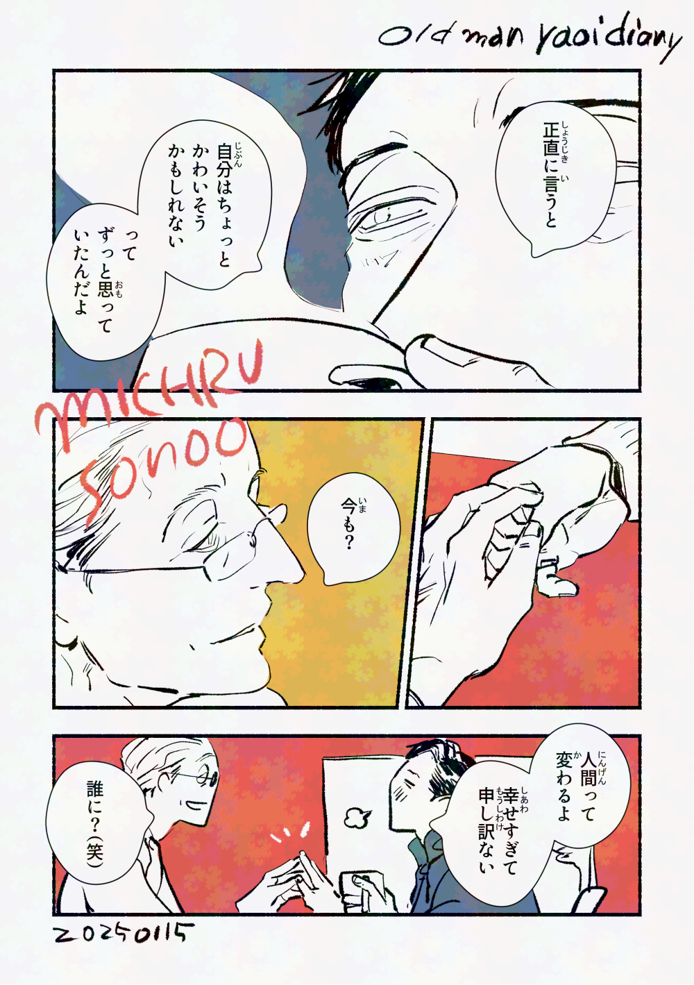 old man yaoi diaryとしてSNSにのせた4枚連作からうまれた漫画です